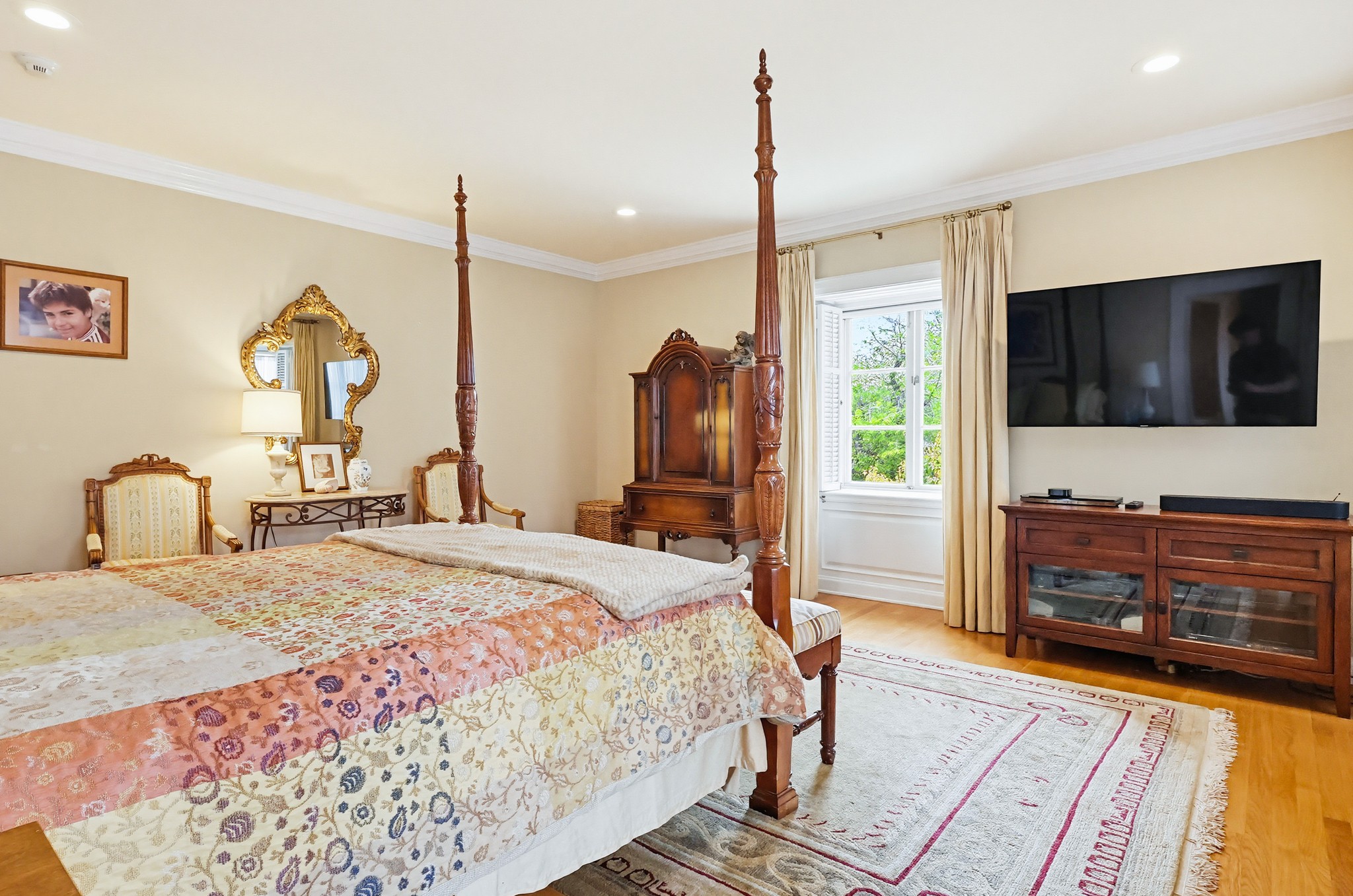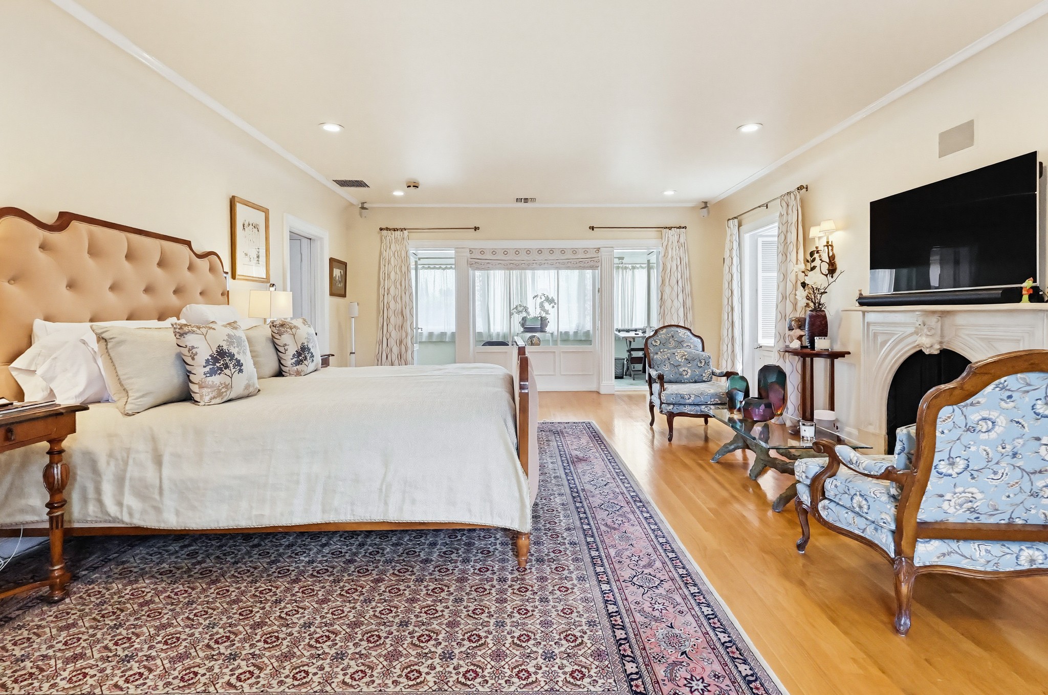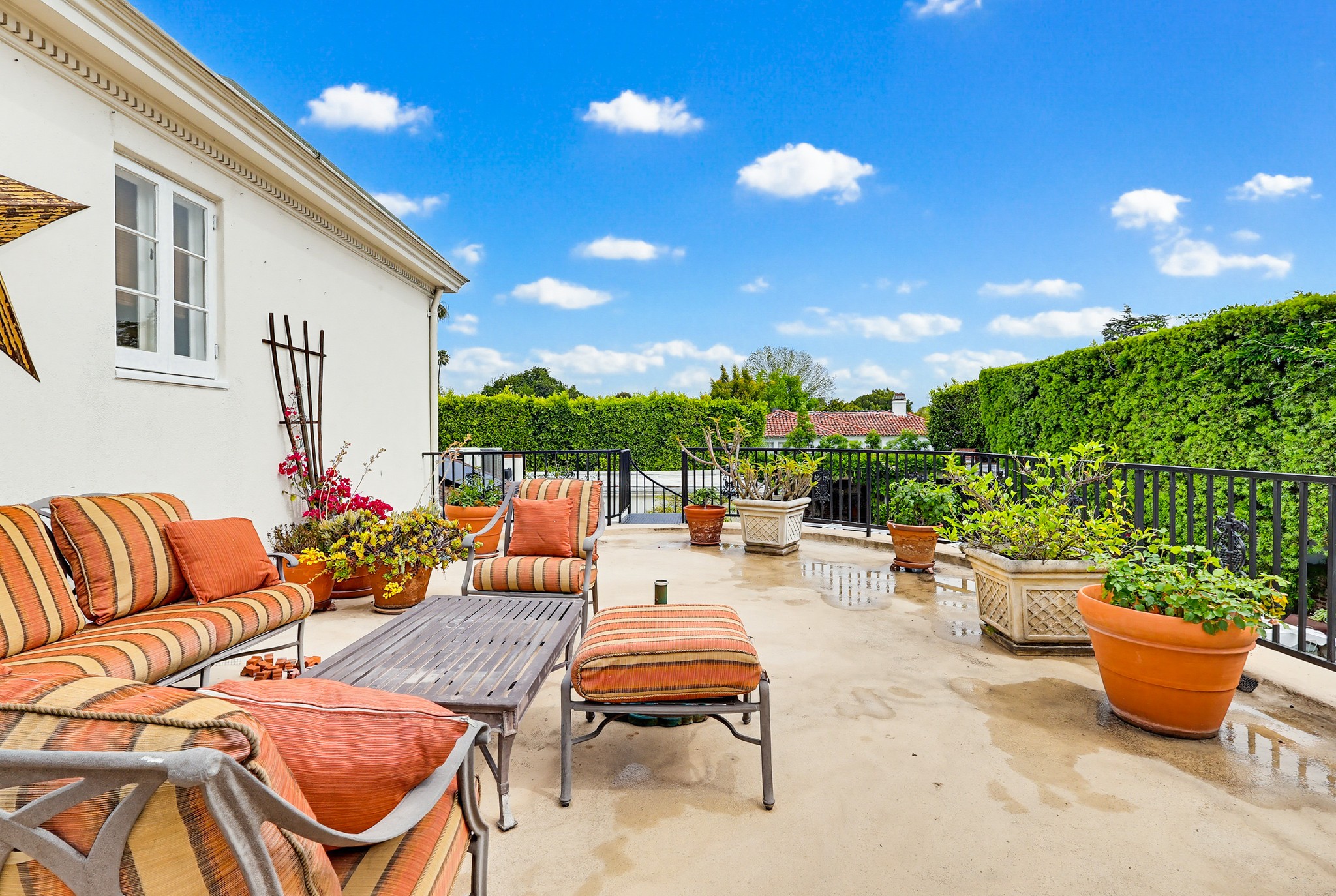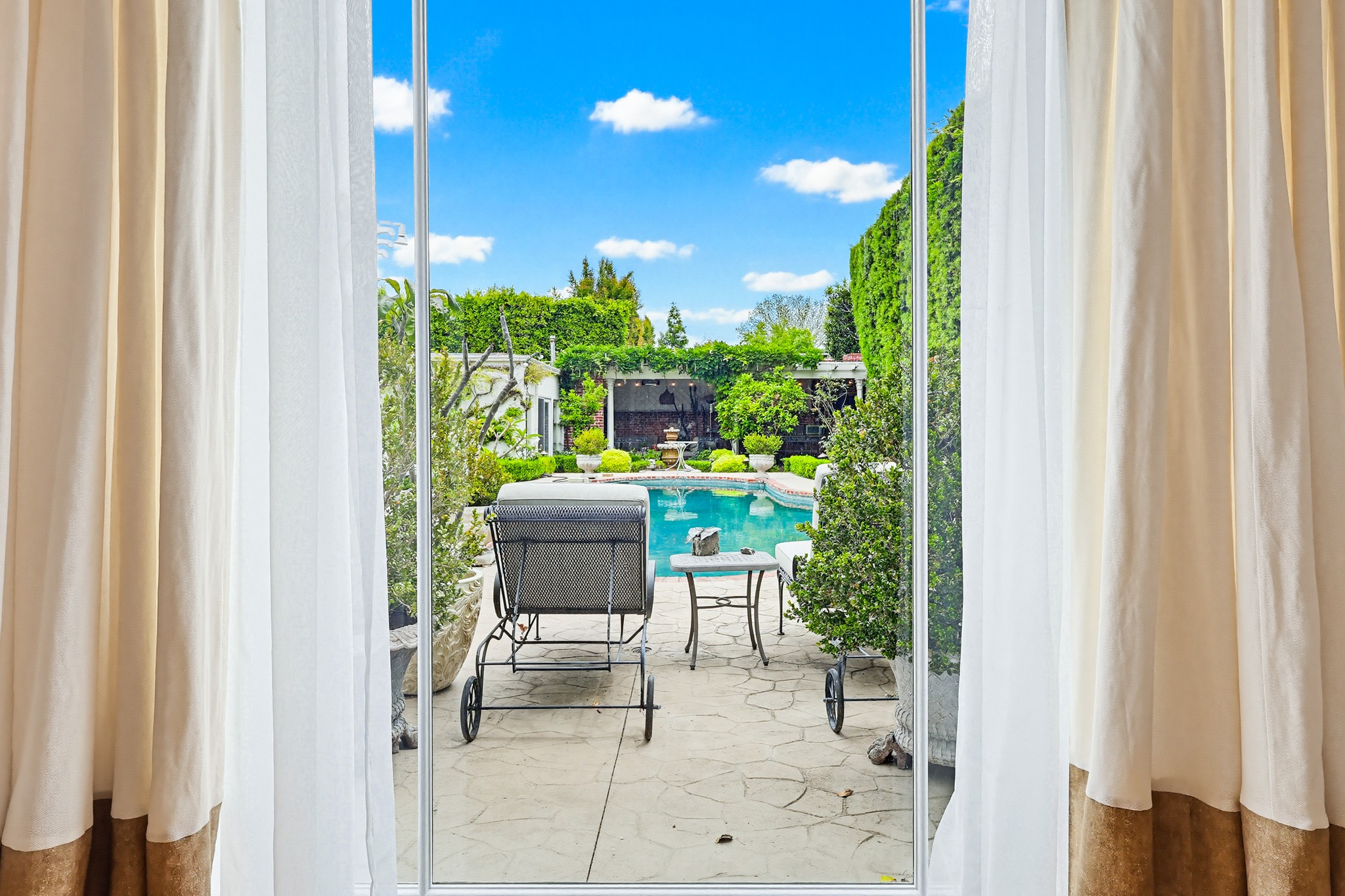 Spectacular Wallace Neff c.1941, but updated gorgeously to modern standards while keeping the classic details. Located in true Hancock Park! Nearly 6800 square feet in the house and on a 16,000+ lot. 4 bedrooms total (3 up) with each having their own bathroom. 2 story oval entry with curving staircase. Formal Living & Dining rooms; Gourmet kitchen, wet bar/butler's pantry,2 family rooms, 2 laundry rooms (one is combined with a guest kitchenette! Back stairs for more direct Kitchen access; upstairs deck overlooking pool/spa, gardens & a covered brick patio with cozy sitting & dining area,BBQ,sink/drinks fridge for all your parties! 3 solar PowerWalls for reduced electric bills, carport behind driveway gates,security system and more! 13monthlease minimum, unfurnished or furnished for a negotiable higher lease rate. Superb!