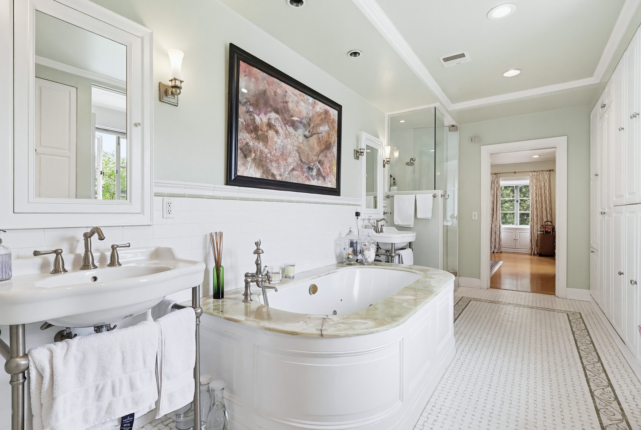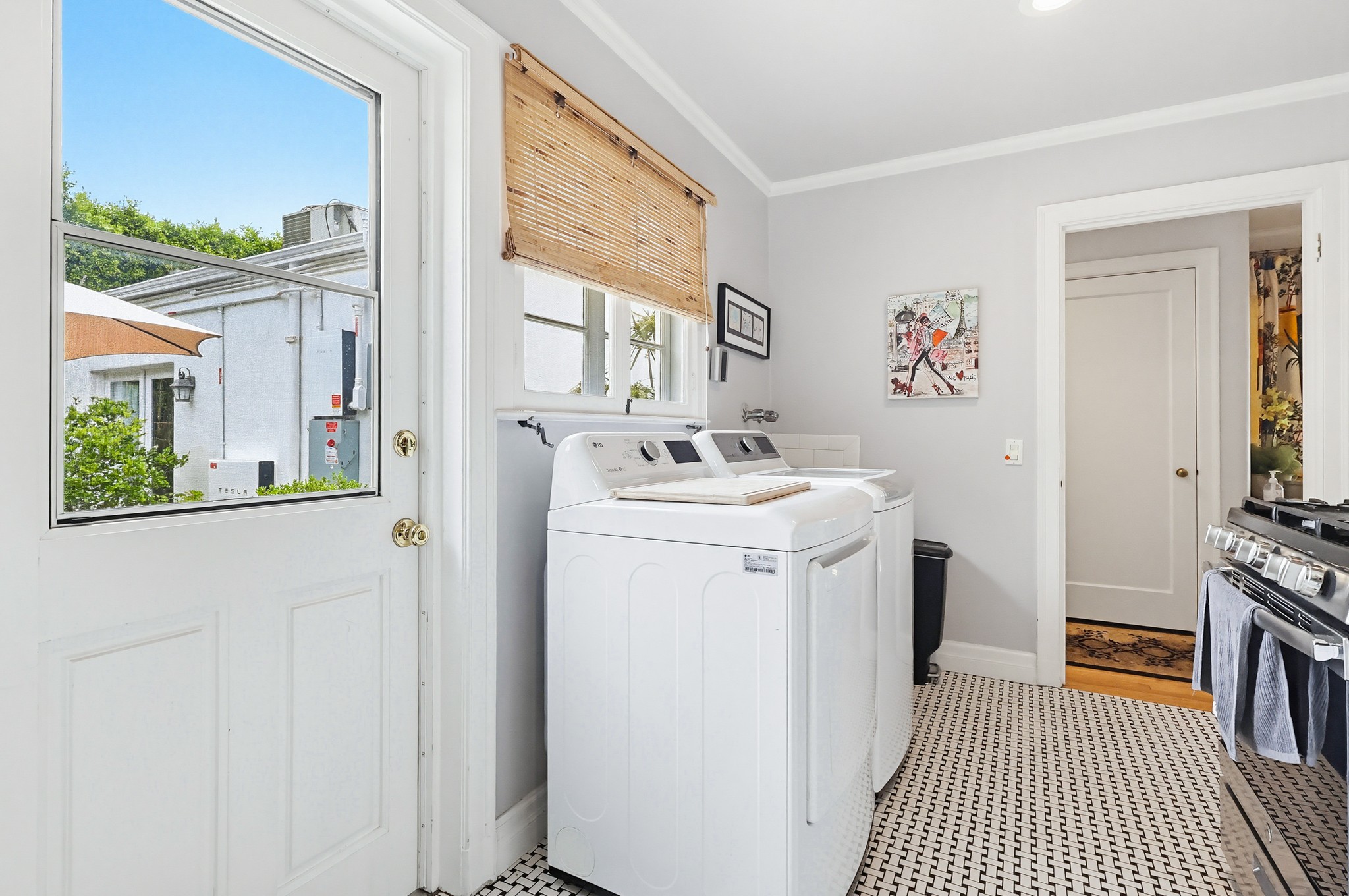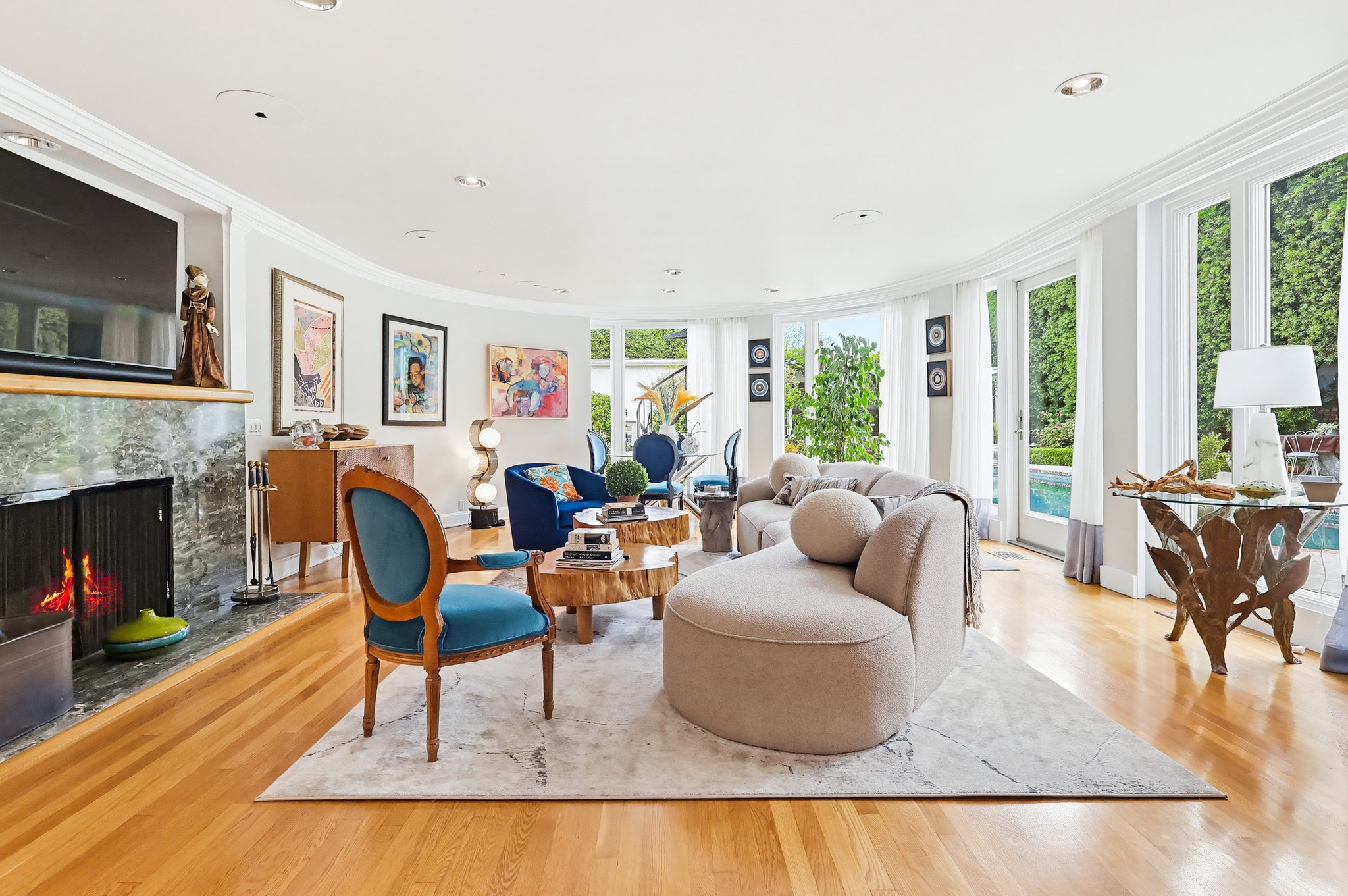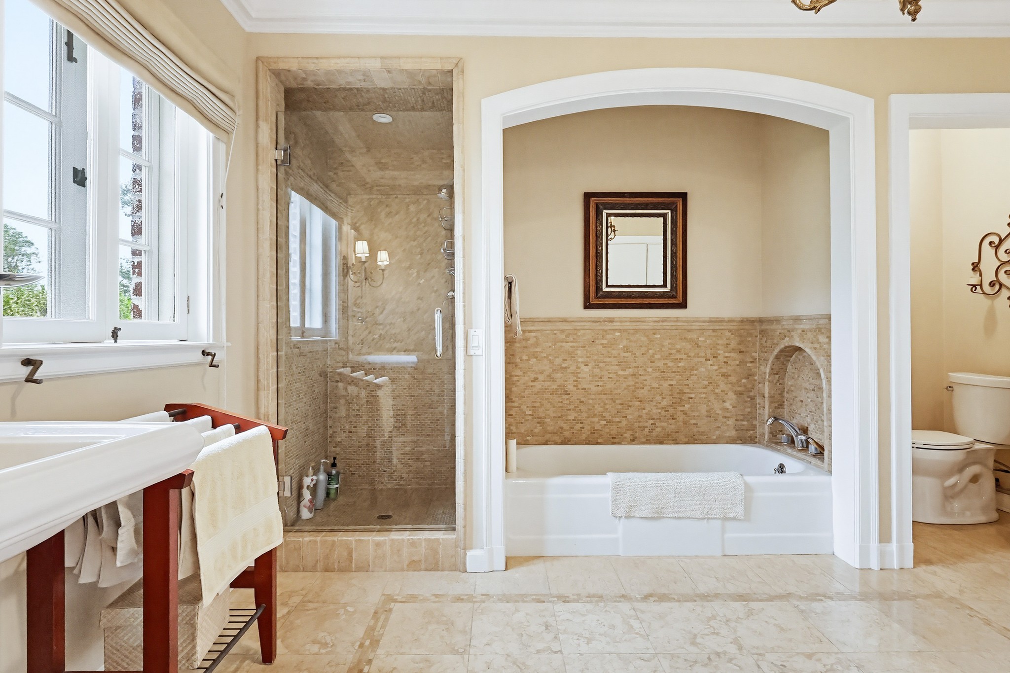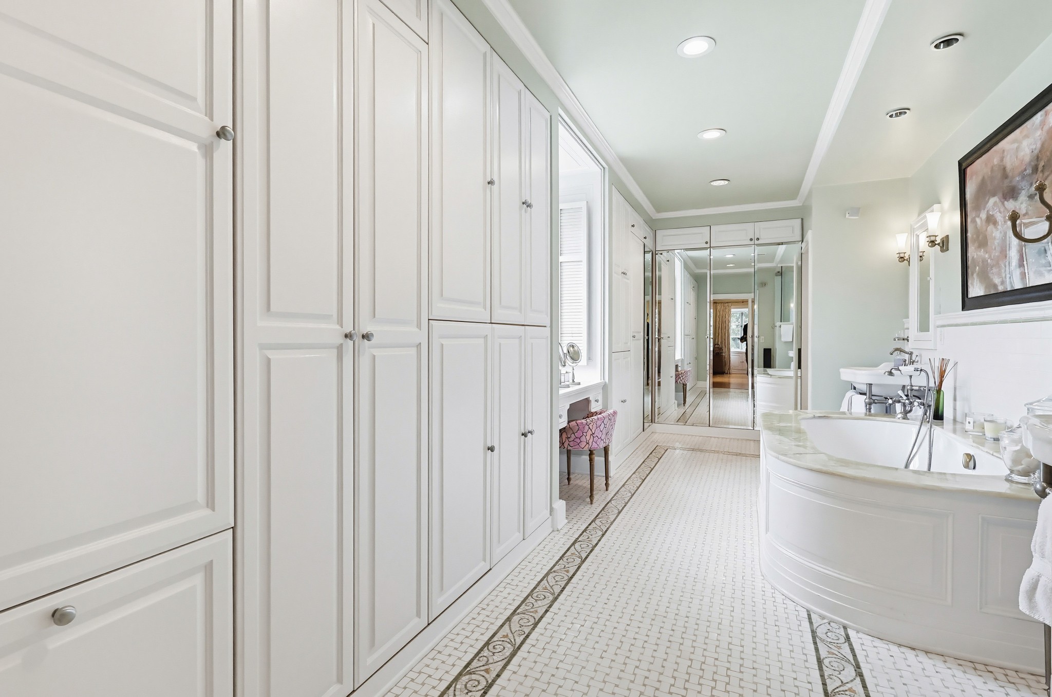 Spectacular Wallace Neff c.1941, but updated gorgeously to modern standards while keeping the classic details. Located in true Hancock Park! Nearly 6800 square feet in the house and on a 16,000+ lot. 4 bedrooms total (3 up) with each having their own bathroom. 2 story oval entry with curving staircase. Formal Living & Dining rooms; Gourmet kitchen, wet bar/butler's pantry,2 family rooms, 2 laundry rooms (one is combined with a guest kitchenette! Back stairs for more direct Kitchen access; upstairs deck overlooking pool/spa, gardens & a covered brick patio with cozy sitting & dining area,BBQ,sink/drinks fridge for all your parties! 3 solar PowerWalls for reduced electric bills, carport behind driveway gates,security system and more! 13monthlease minimum, unfurnished or furnished for a negotiable higher lease rate. Superb!