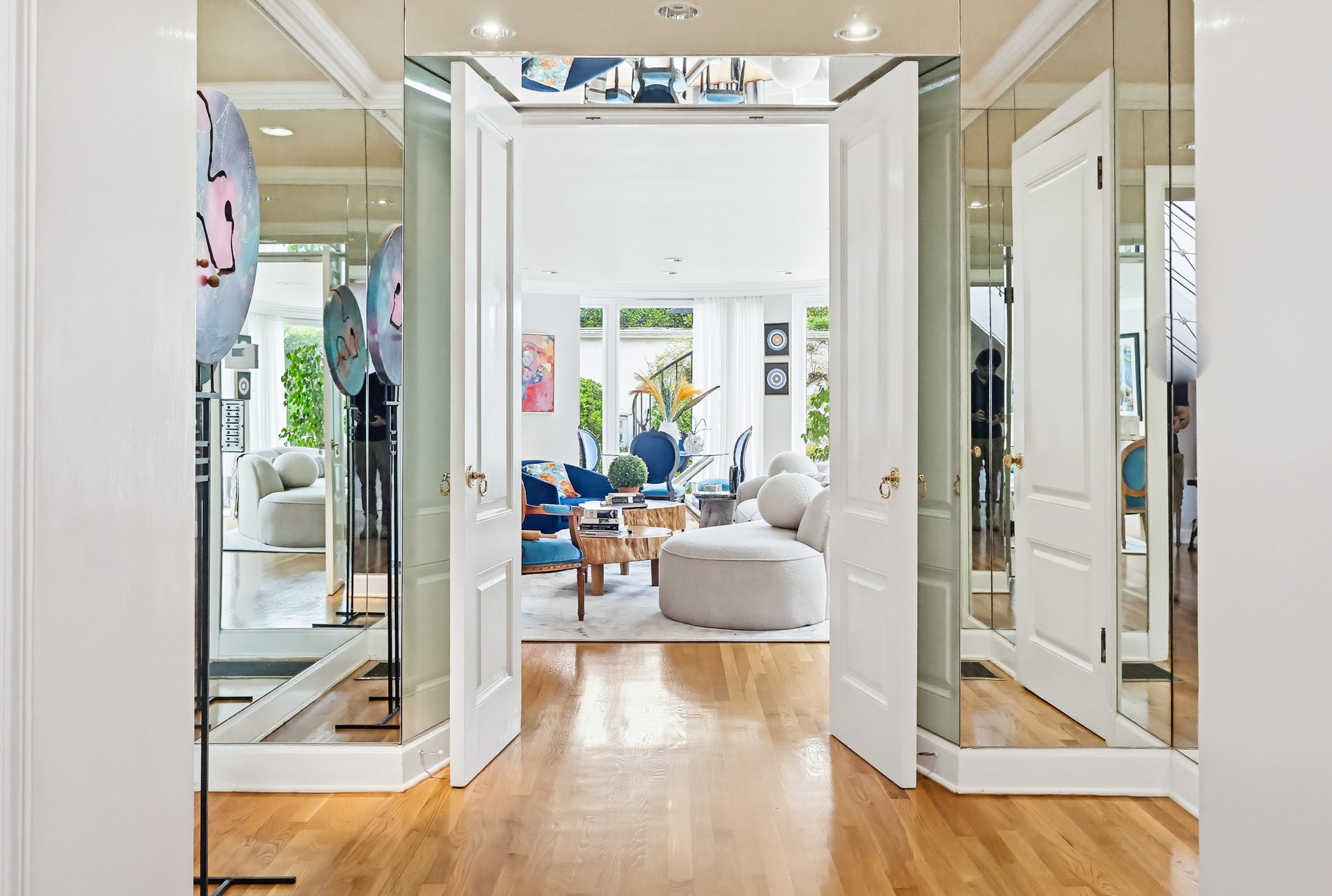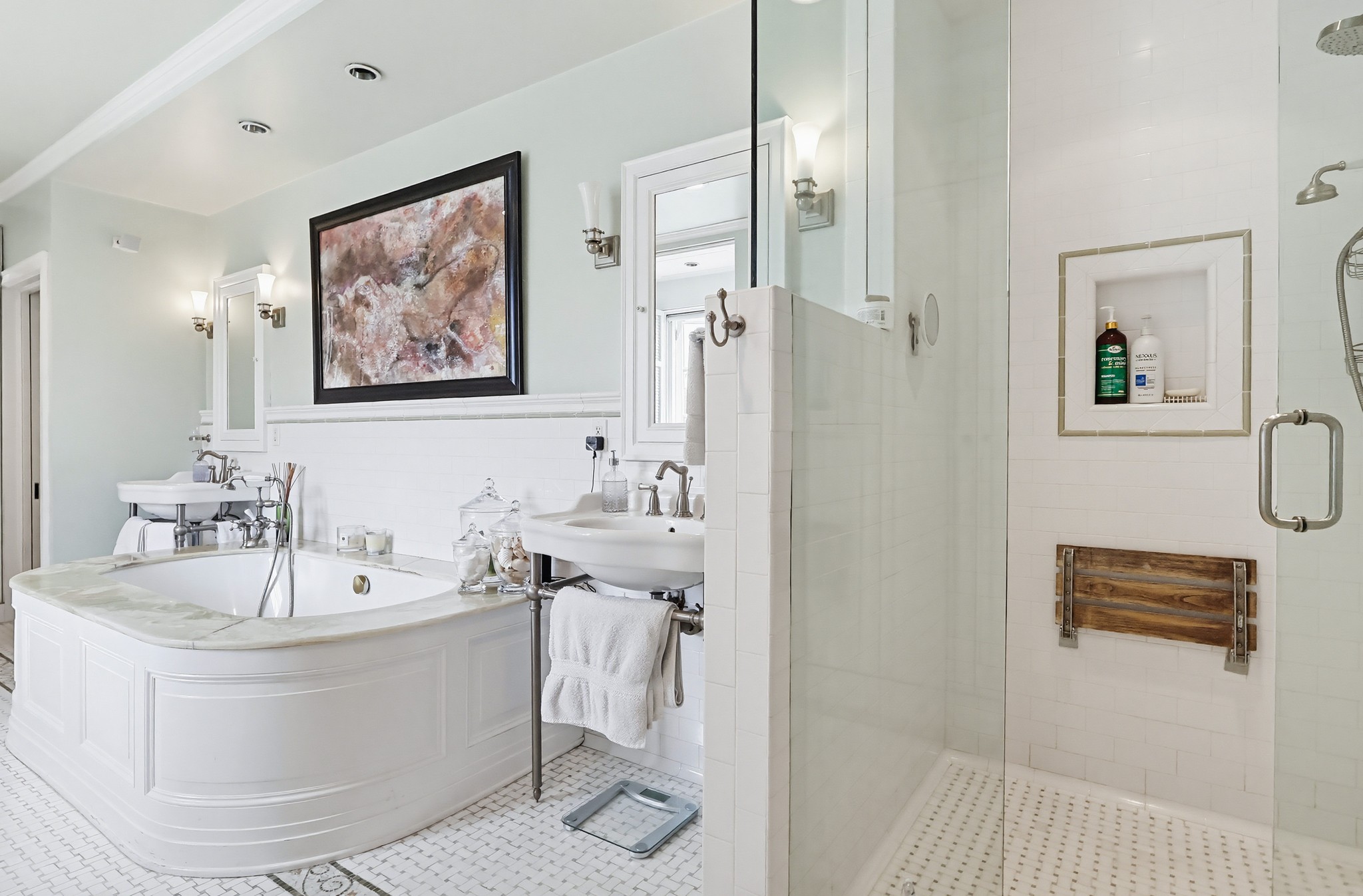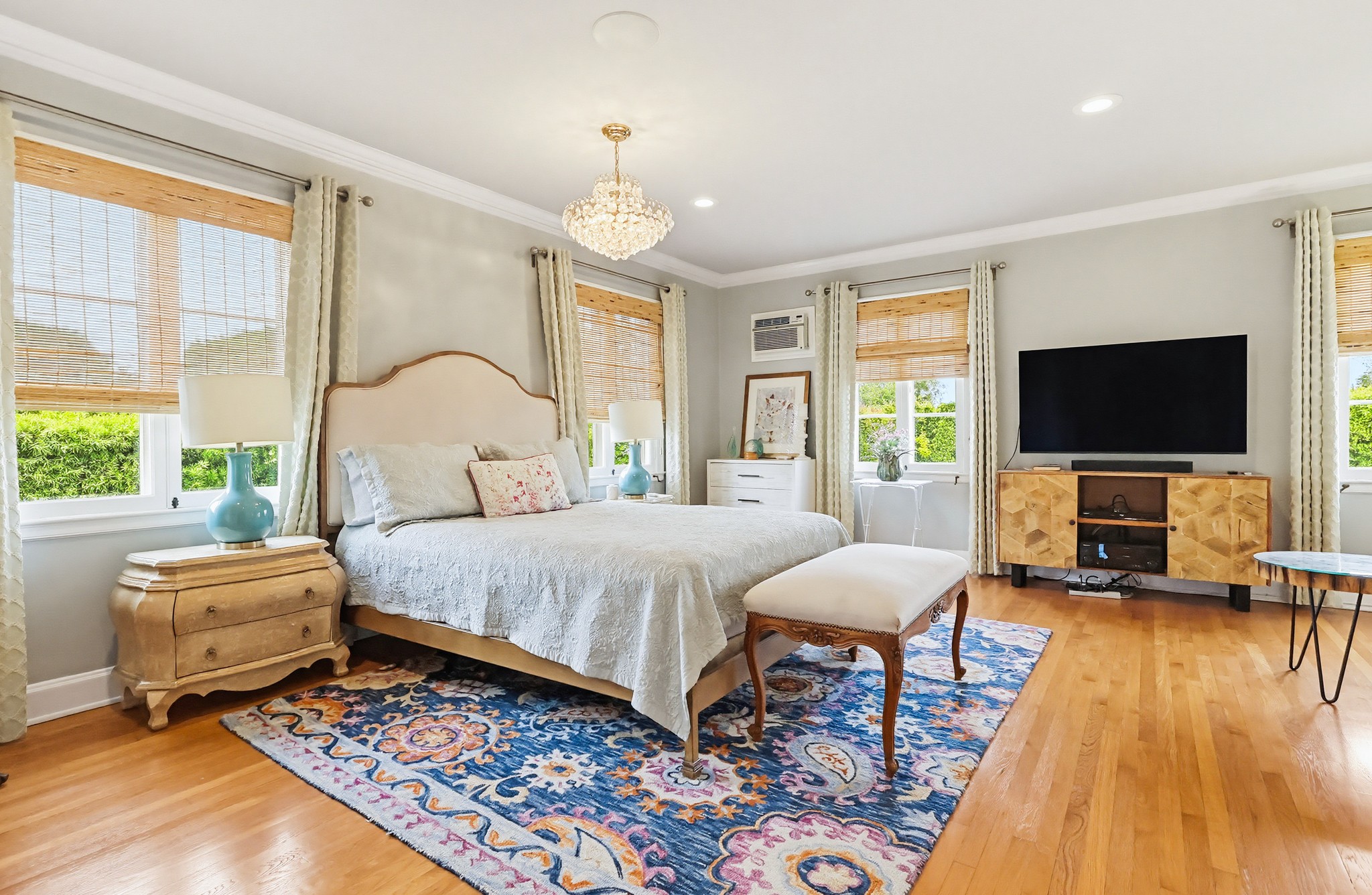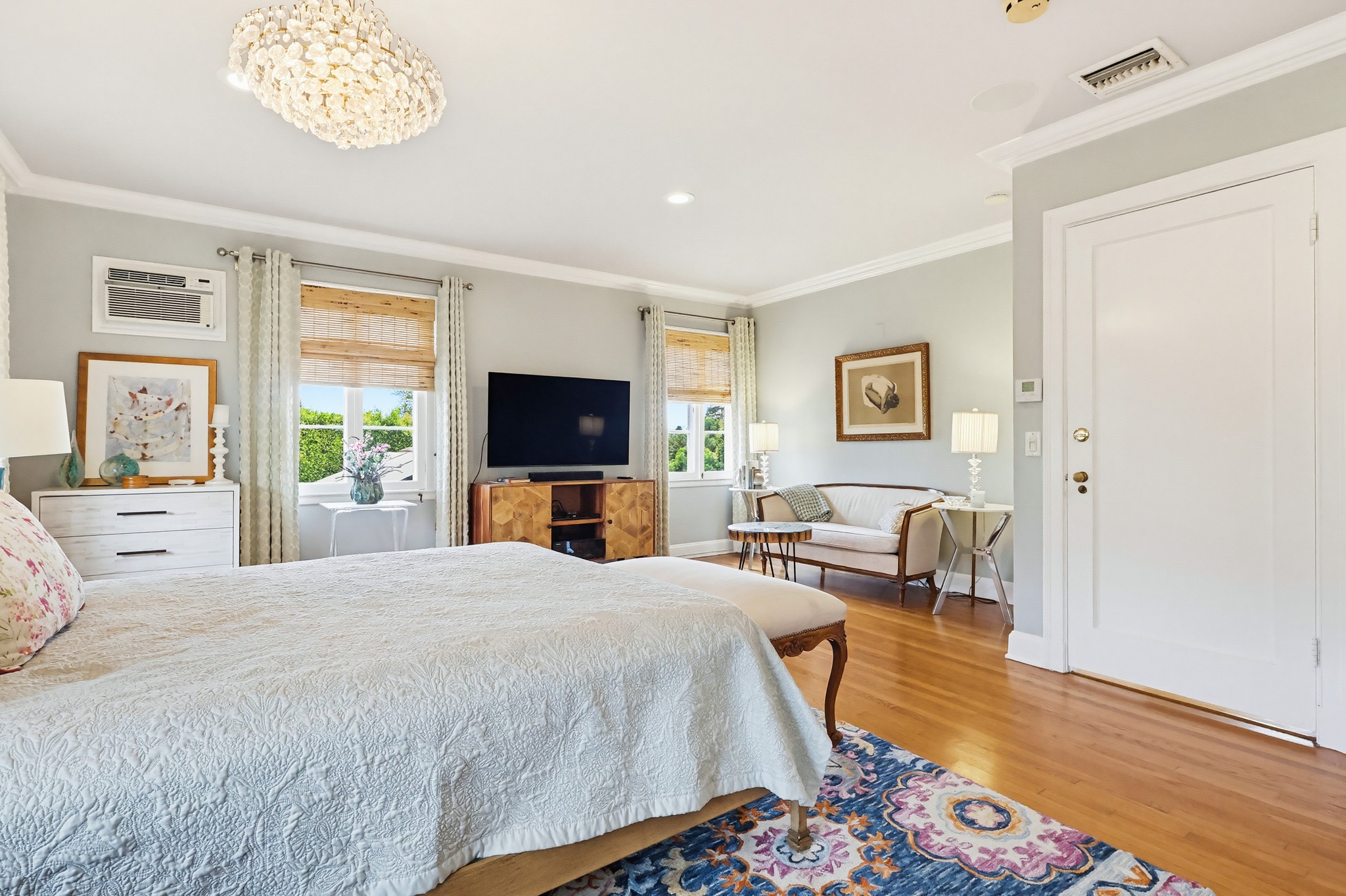 Spectacular Wallace Neff c.1941, but updated gorgeously to modern standards while keeping the classic details. Located in true Hancock Park! Nearly 6800 square feet in the house and on a 16,000+ lot. 4 bedrooms total (3 up) with each having their own bathroom. 2 story oval entry with curving staircase. Formal Living & Dining rooms; Gourmet kitchen, wet bar/butler's pantry,2 family rooms, 2 laundry rooms (one is combined with a guest kitchenette! Back stairs for more direct Kitchen access; upstairs deck overlooking pool/spa, gardens & a covered brick patio with cozy sitting & dining area,BBQ,sink/drinks fridge for all your parties! 3 solar PowerWalls for reduced electric bills, carport behind driveway gates,security system and more! 13monthlease minimum, unfurnished or furnished for a negotiable higher lease rate. Superb!