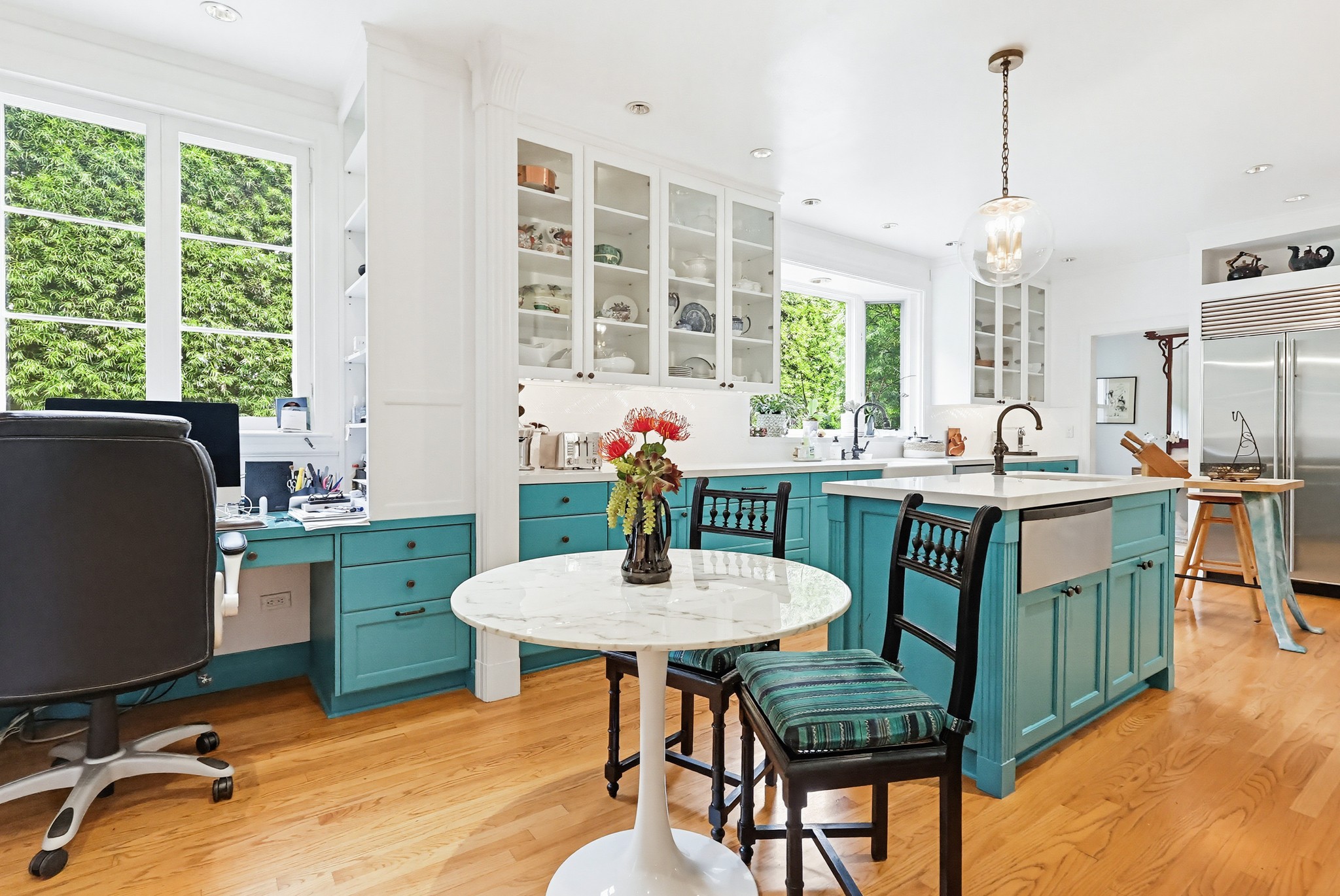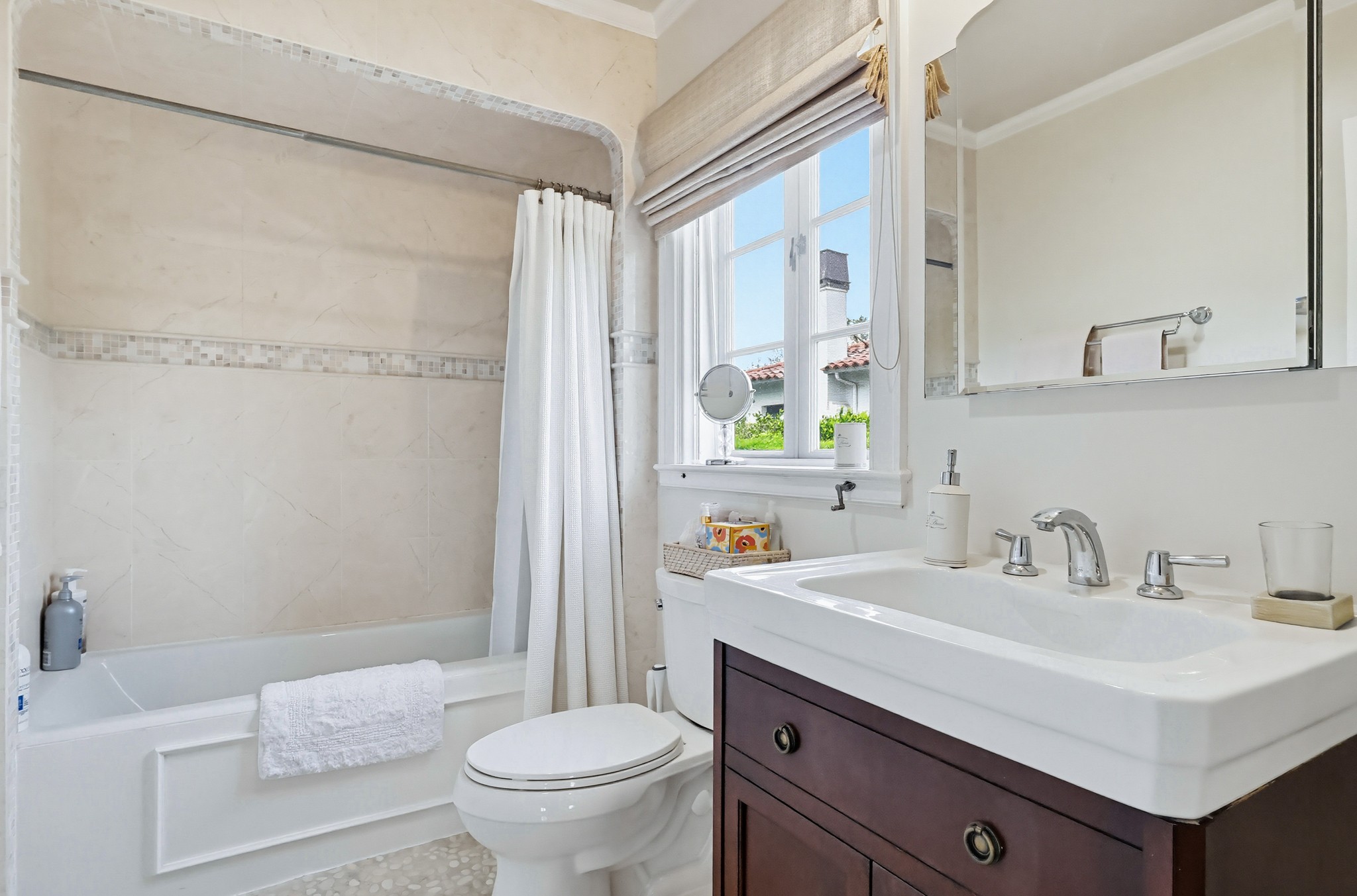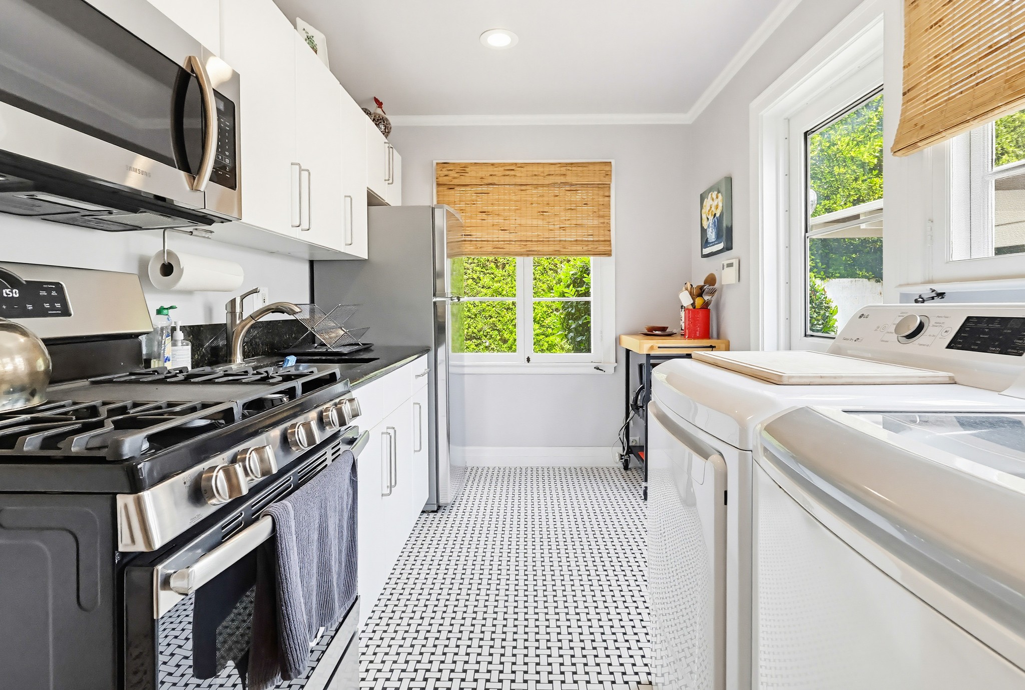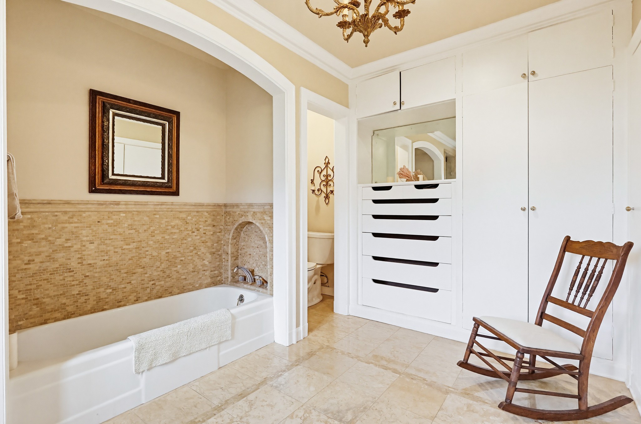 Spectacular Wallace Neff c.1941, but updated gorgeously to modern standards while keeping the classic details. Located in true Hancock Park! Nearly 6800 square feet in the house and on a 16,000+ lot. 4 bedrooms total (3 up) with each having their own bathroom. 2 story oval entry with curving staircase. Formal Living & Dining rooms; Gourmet kitchen, wet bar/butler's pantry,2 family rooms, 2 laundry rooms (one is combined with a guest kitchenette! Back stairs for more direct Kitchen access; upstairs deck overlooking pool/spa, gardens & a covered brick patio with cozy sitting & dining area,BBQ,sink/drinks fridge for all your parties! 3 solar PowerWalls for reduced electric bills, carport behind driveway gates,security system and more! 13monthlease minimum, unfurnished or furnished for a negotiable higher lease rate. Superb!